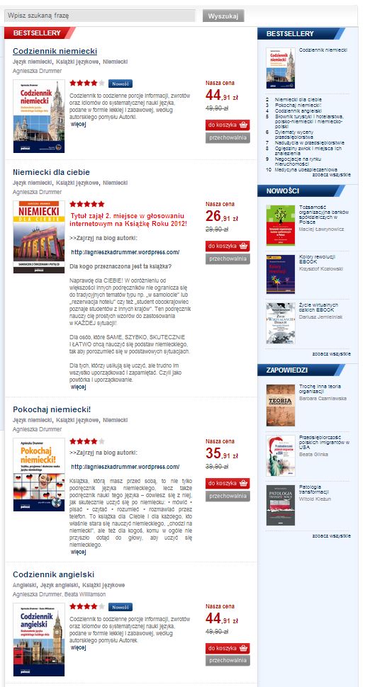 Grudzień 2016, na żółto zaznaczone podręczniki autorstwa Agnieszki Drummer: