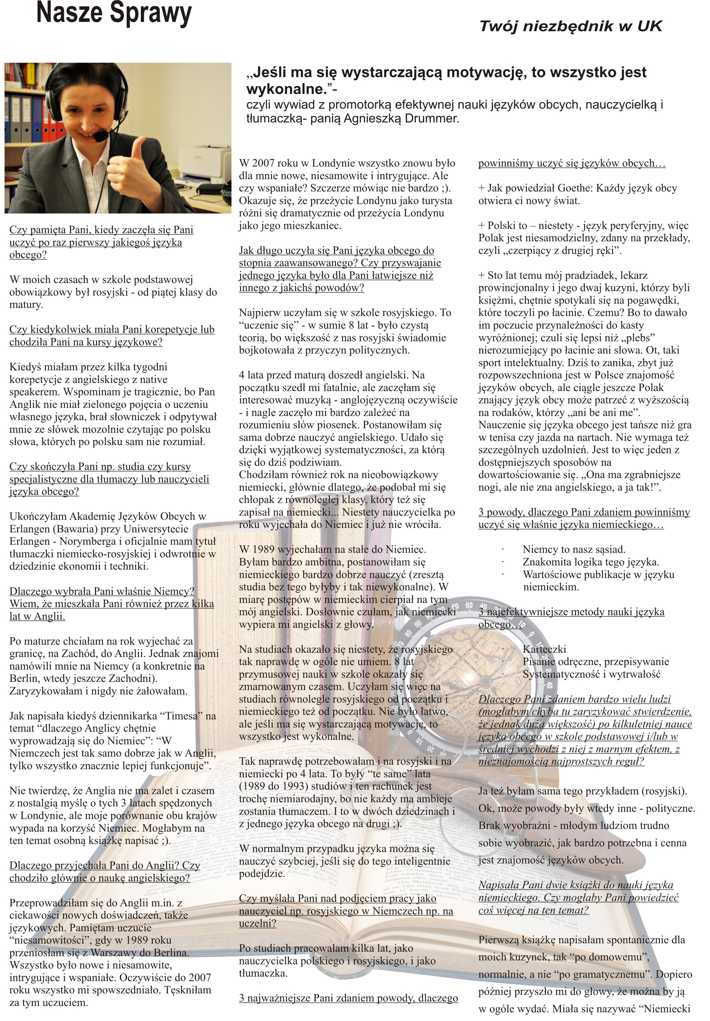 1 lipca 2012. Wywiad dla polskiego kwartalnika „Nasze sprawy” (wydawanego w Anglii):