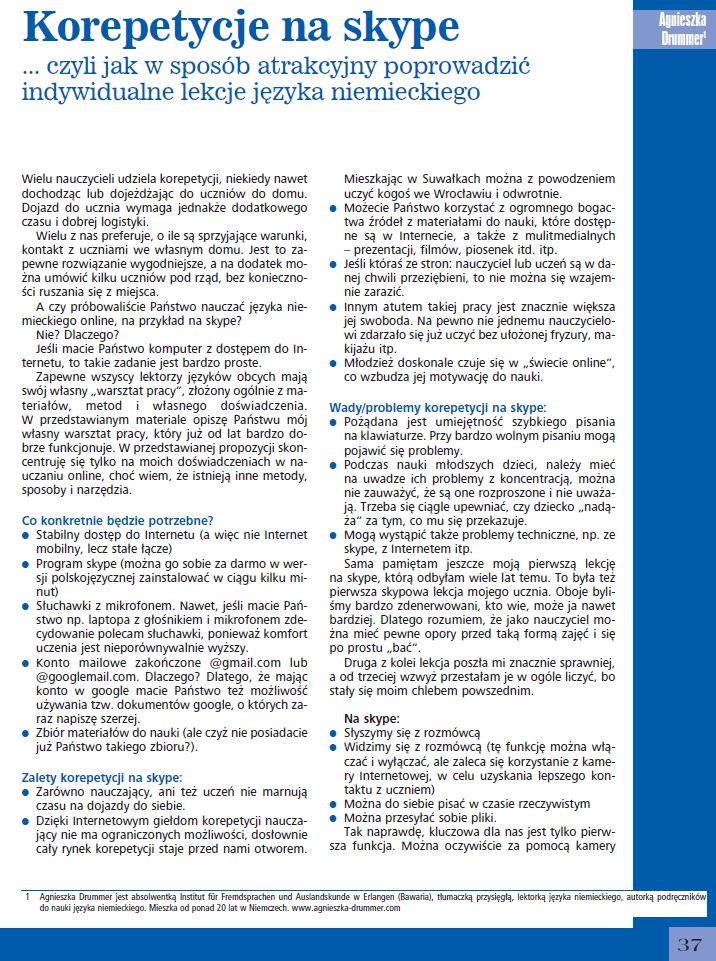 Mój artykuł zachęcający nauczycieli do uczenia przez skype.