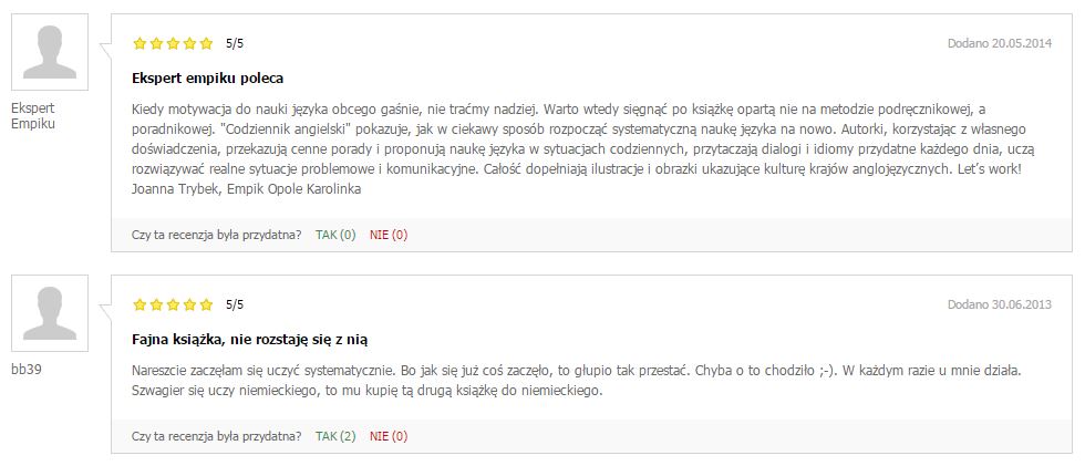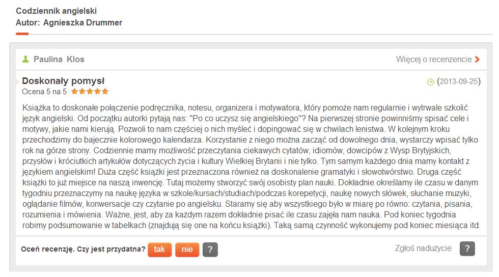Pisze do Pani, bo chcialam przede wszystkim podziekowac za ksiazke ktora szczesliwym trafem kupilam w ksiegarni a mianowicie: Codziennik angielski.