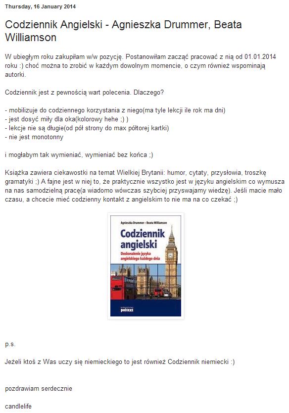 Oryginał tu: http://ilovelearnenglish.blogspot.de/2014/01/codziennik-angielski-agnieszka-drummer.html